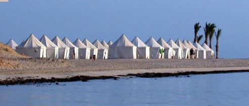 Tenten: De tenten staan -net als de bar, restaurant en het duikcentrum- midden op het strand, direct aan zee. De tent inrichting is zeer eenvoudig, maar comfortabel en ruim. De grote tweepersoonstenten hebben een natuurlijke ‘airco’ vanwege de koele bries die uit de richting van de Rode Zee komt. Er zijn gemeenschappelijke toilet- en douche faciliteiten.